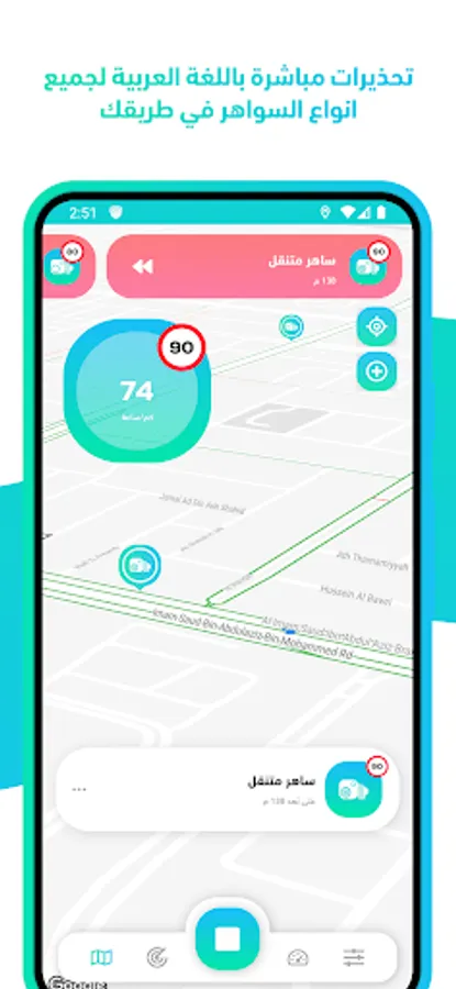 • كشف جميع سواهر السرعة والسواهر الثابتة وسواهر الإشارات في جميع مدن المملكة العربية السعودية و الإمارات العربية المتحدة و البحرين و قطر و الكويت و عمان و مصر و العراق وجميع الطرق السريعة فيهم.