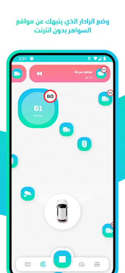 • يمكنك استخدام التطبيق مع تطبيق خرائط جوجل لكشف السواهر القريبة اثناء القيادة.
