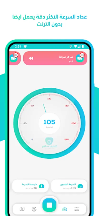 • عداد السرعة الاكثر دقة ويعمل بدون الوصول الى الانترنت.