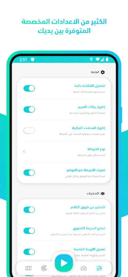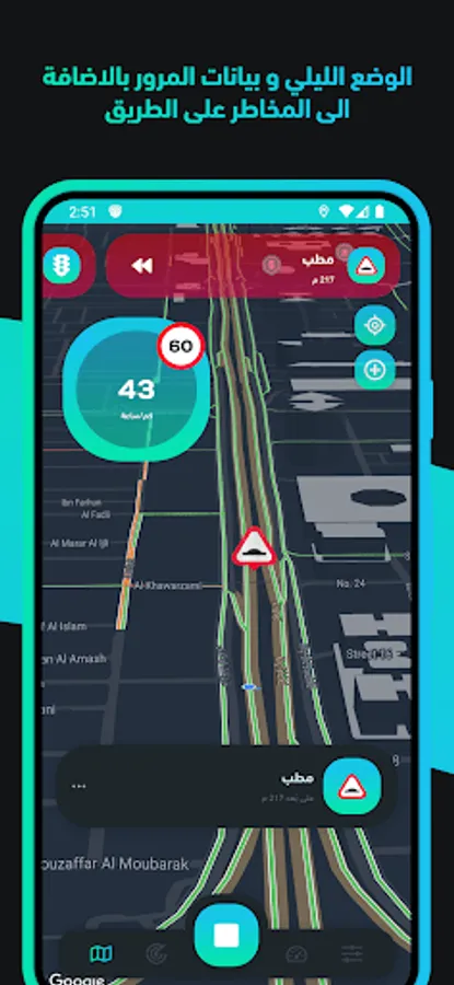 • وضع القيادة الليلية لسهولة عمل التطبيق في الاوقات المتأخره.