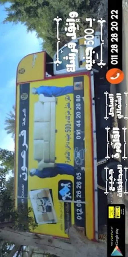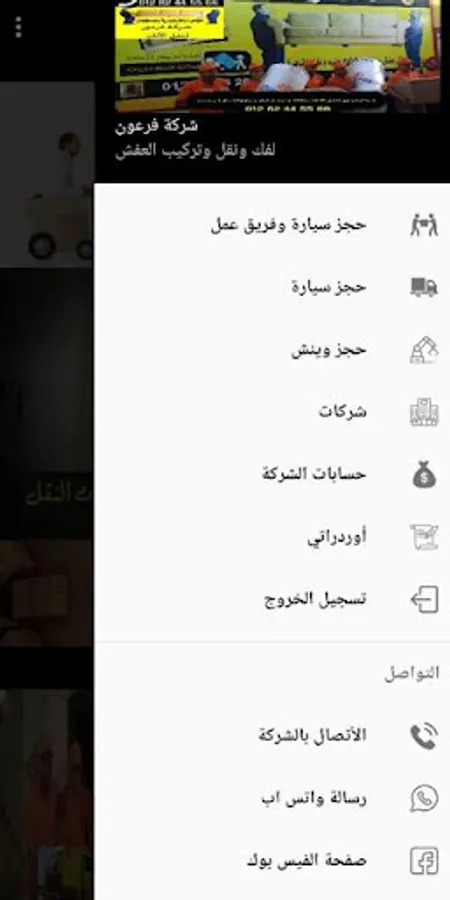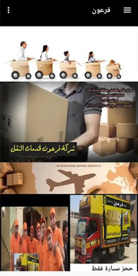 A special application for Pharaoh Company for moving furniture, where you can through the application book a trip to move the furniture only or a trip to move the furniture and its trained workers and also you can review the rest of the Pharaoh's services such as refrigerated transport and car transport and winch lift furniture