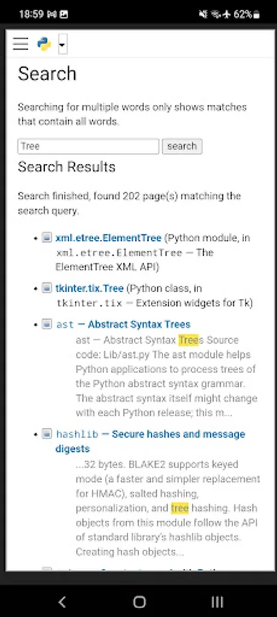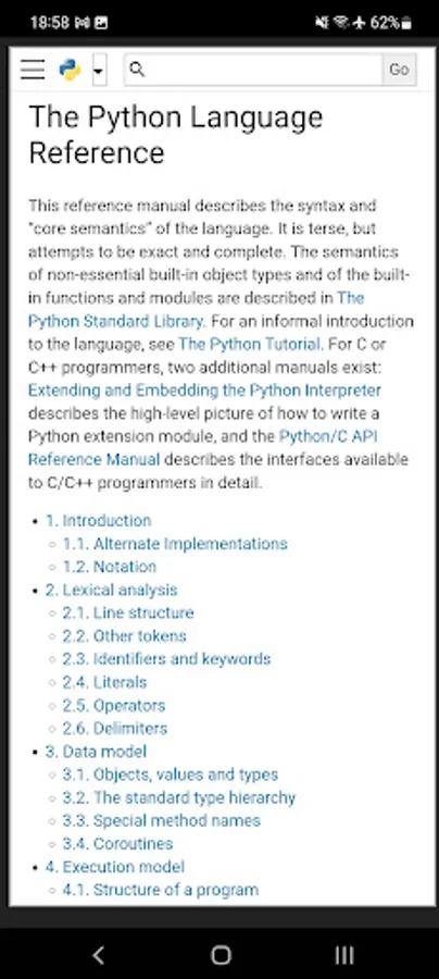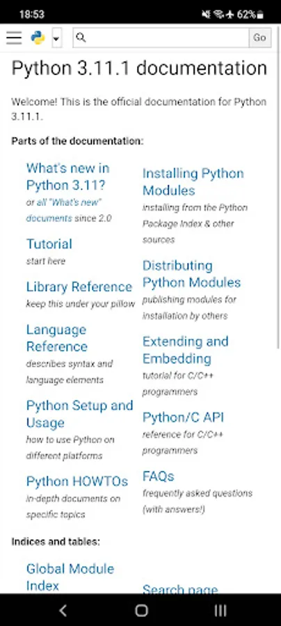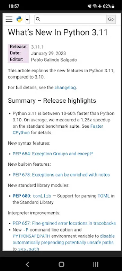 Python 3.11.1 HTML offline documentation for Google-Android OS. Imagine Python 3.11 the complete HTML offline version at your mobile device and available to all.