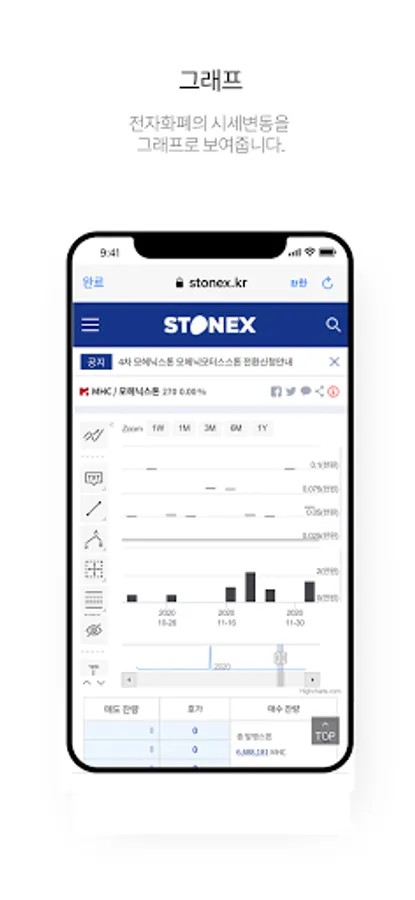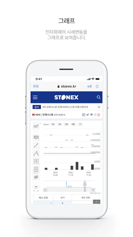 -Market price and fluctuation graph Supports the market price and fluctuation of electronic money as a graph.
