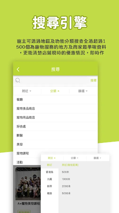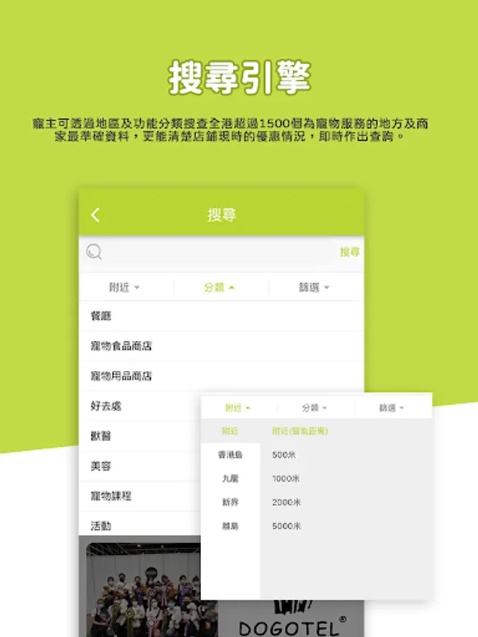 Pet owners can search for the most accurate information of more than 3,000 places and businesses that serve pets in Hong Kong by region and function classification, and can also know the current discount situation of the store and make real-time inquiries.