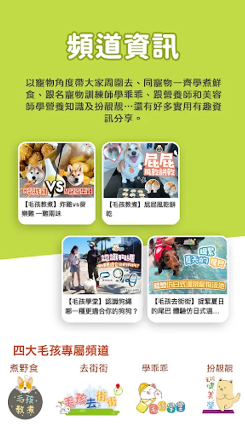 Take everyone around from the perspective of pets, learn to cook fresh food with pets, learn to be good with famous pet trainers, learn nutrition knowledge and dress up from nutritionists and beauticians... There are also a lot of useful and interesting information to share.