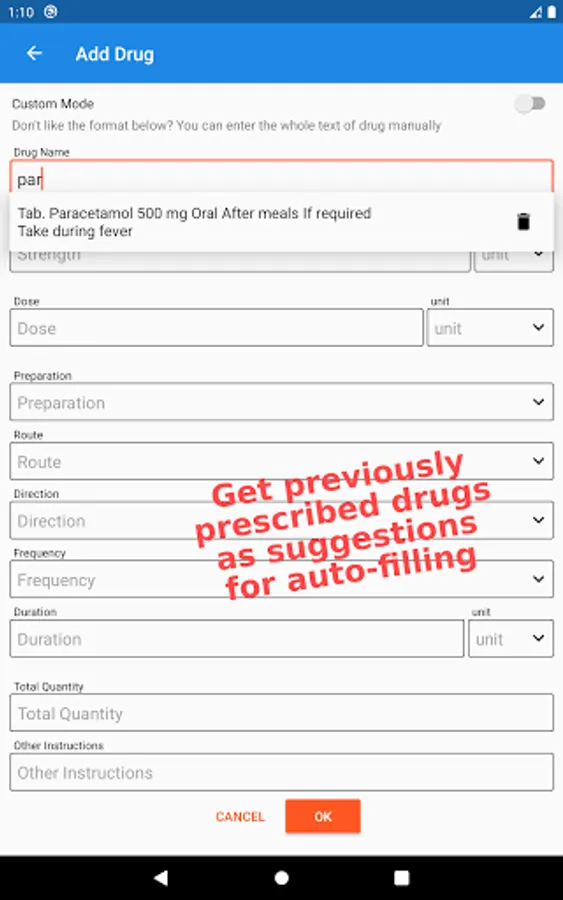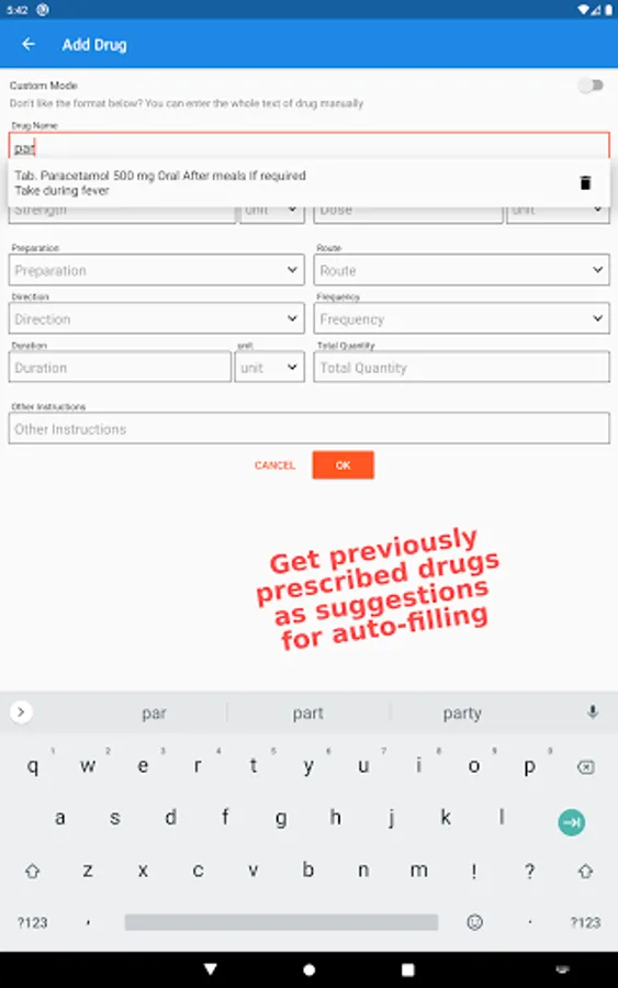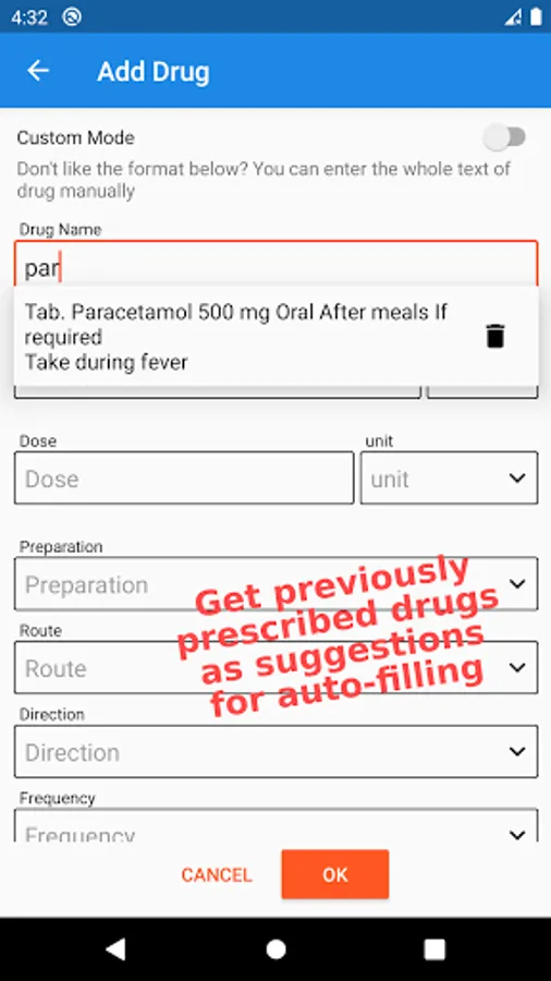 3. The application provides a feature that automatically completes the name of medicines that are frequently or previously prescribed by the doctor. Saving doctors valuable time.