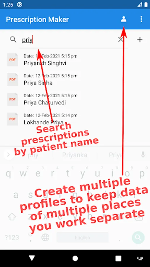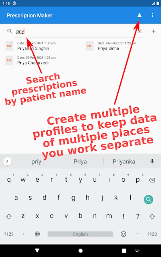 4. Prescription Maker allows users to search for saved prescriptions by patient’s name. No need for unnecessary surfing through old data. Just search the name of the patient.