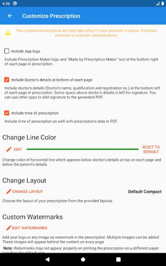 Prescription Maker also offers a premium to its users. It is paid and offers a list of additional features that can refine the overall user experience for doctors. The said features include: