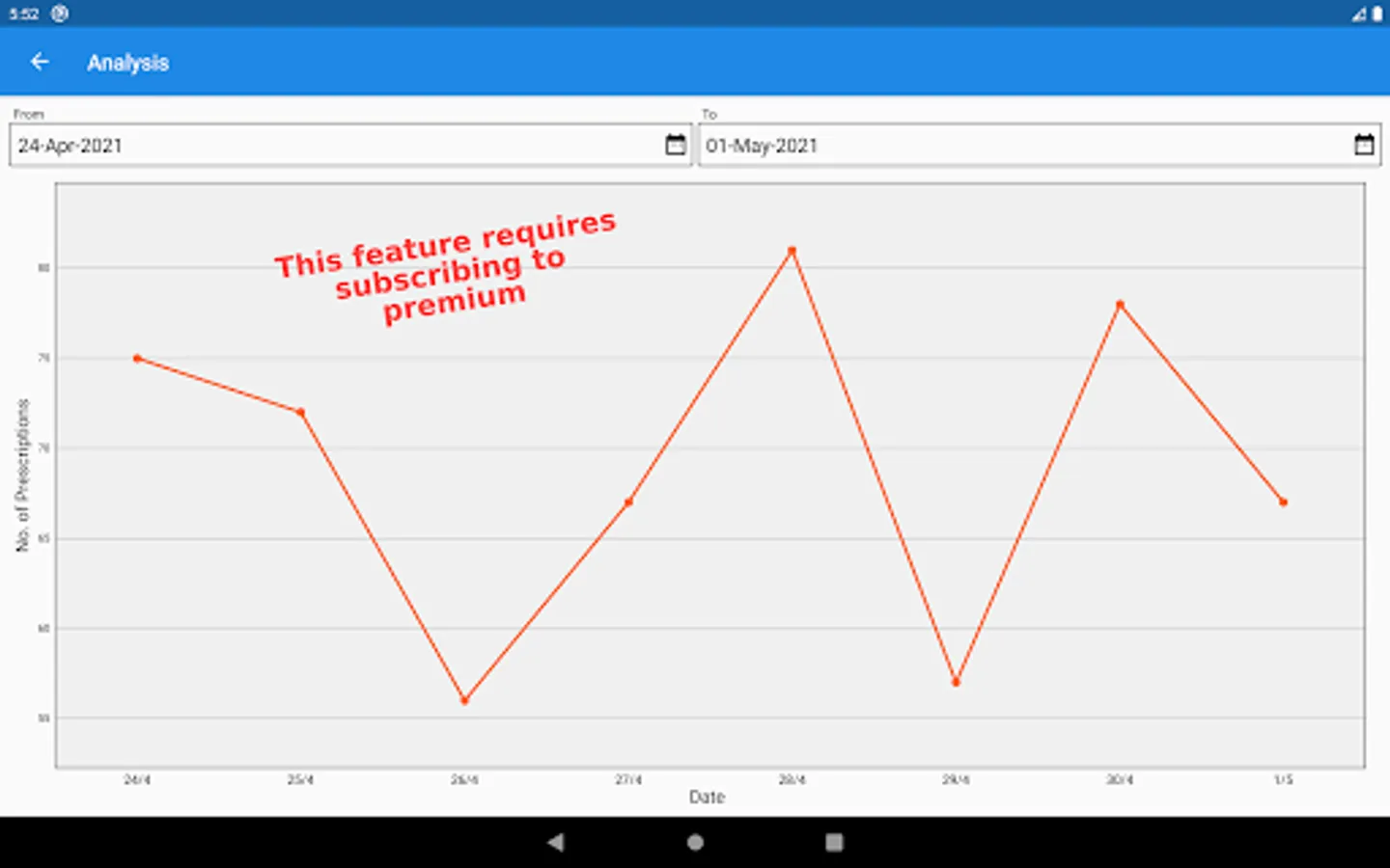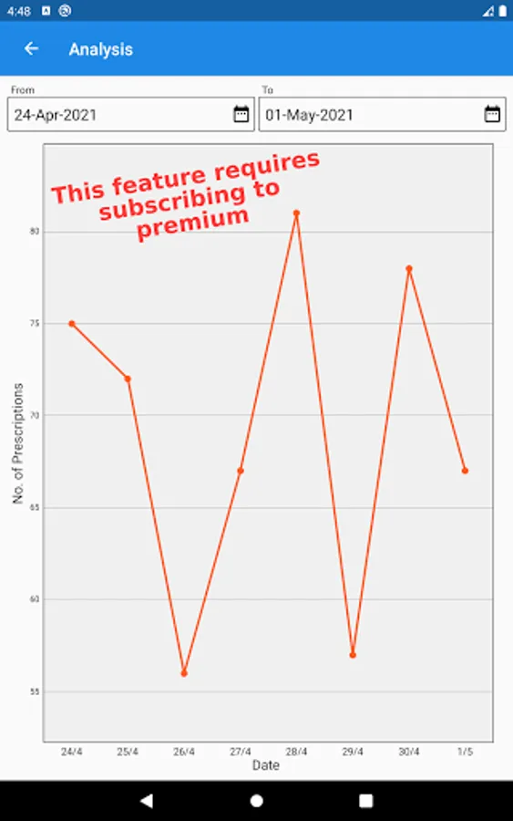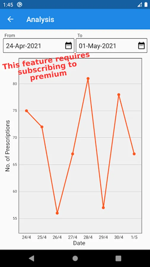 2. This version of Prescription Maker offers a useful feature of analytics. Wherein it provides information about the number of prescriptions and dates in graphical format.