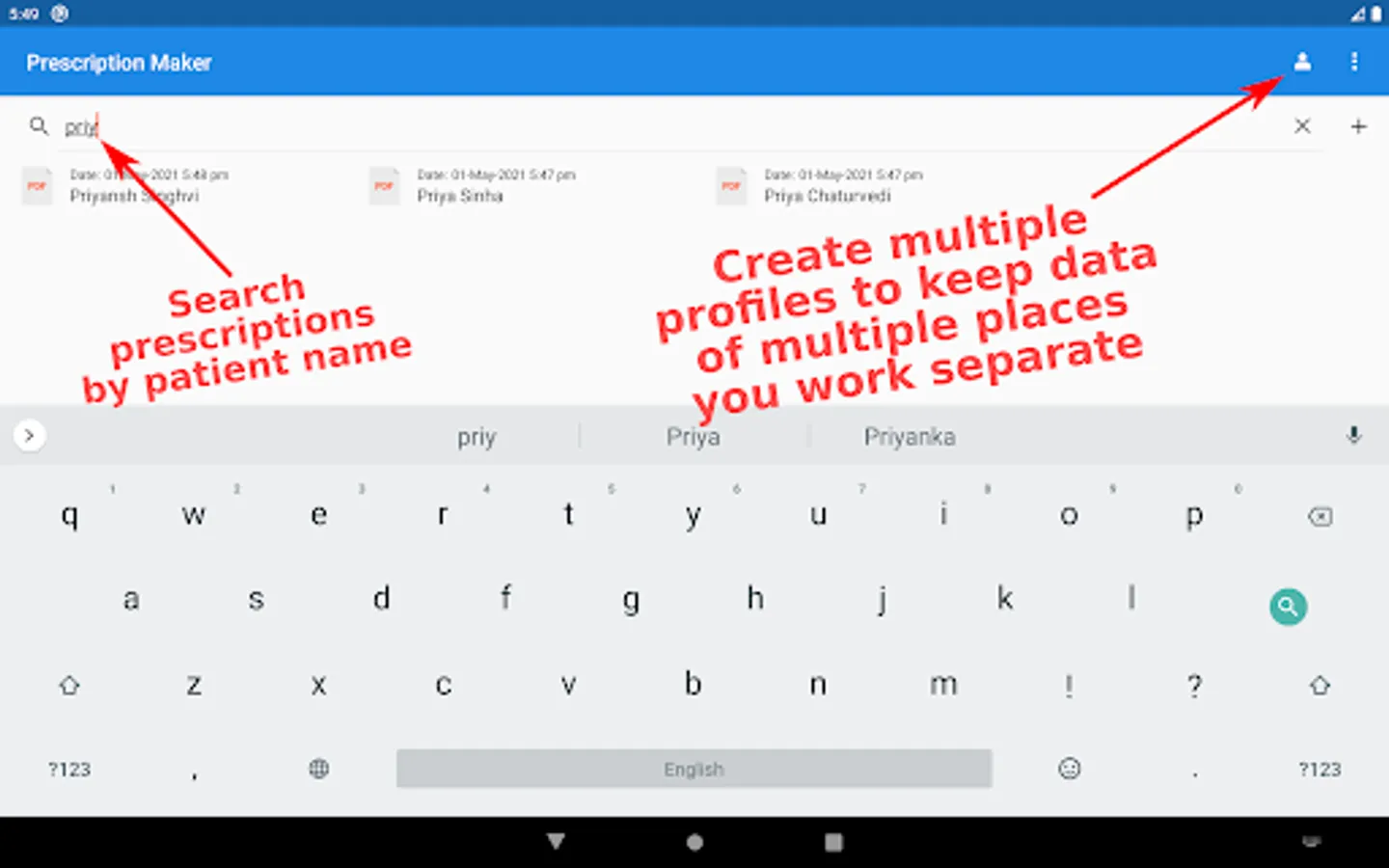 2. Prescription maker allows doctors to create multiple profiles for all of the different hospitals or clinics they work at. This helps in keeping the data of patients segregated and organized.