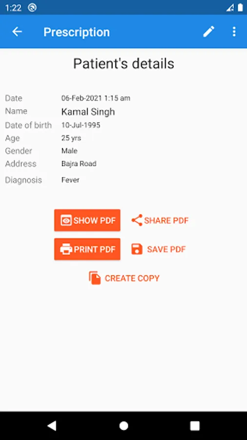 5. This application allows you to create a copy of a saved prescription so that you can edit the previous prescription changing only a few details on the following visit of the same patient.