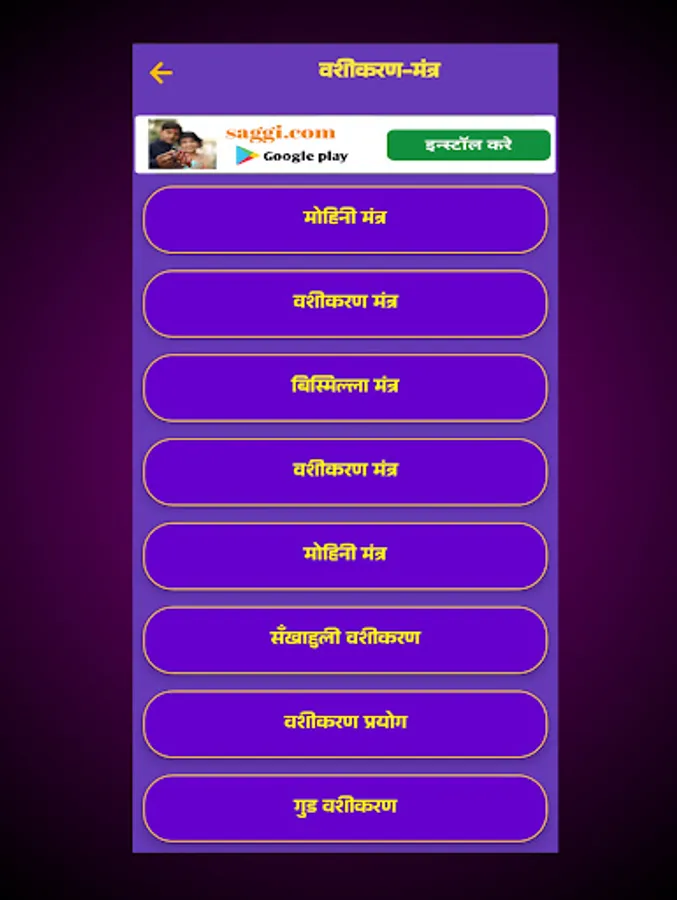 हमारे इस अप्प मे विभिन्न प्रकार के मंत्र और टोटके का विधिवत प्रयोग दिया गया हे।