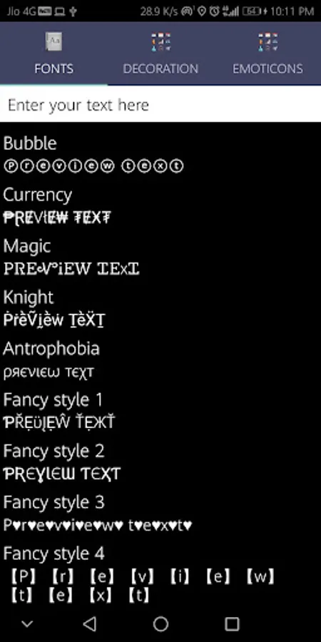 Another cool feature of the stylish fonts app is user friendly and clear behaviour for creating text styles. Users can easily share or send all of the generated stylish fonts to their family or friends. Also, while chatting, you can send these chat style and impress everyone.