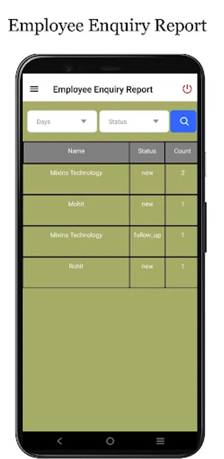 APP will give you enquiry follow up reports, total enquiry done, employee wise enquiry done report.