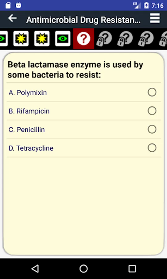 You cannot progress until you answer the quiz cards to unlock more cards.