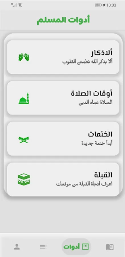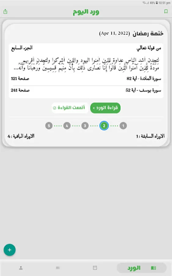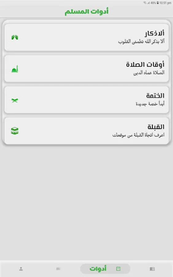• Al-Khatmat, where you can seal the Noble Qur’an within the period that you specify, and you can add more than one seal