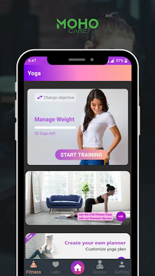 MOHO is designed in collaboration with fitness experts across different genres to bring the best at your fingertips - Yoga, Aerobics, Zumba, Weight training, Office workout & more. Not only this, we are soon to bring LIVE CLASSES FROM THESE EXPERTS exclusively on MOHO. So let’s start - download the app & take your first step for a healthier tomorrow.