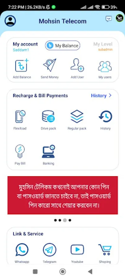 We are introducing you Auto Flexiload Software. Through this Mobile App you can top up all Bangladeshi mobile operator like Grameenphone , Airtel ,robi, banglalink and Skitto. Mobile Banking facilities like bkash, nagad, roket are also available in this app. All the app service are given bellow