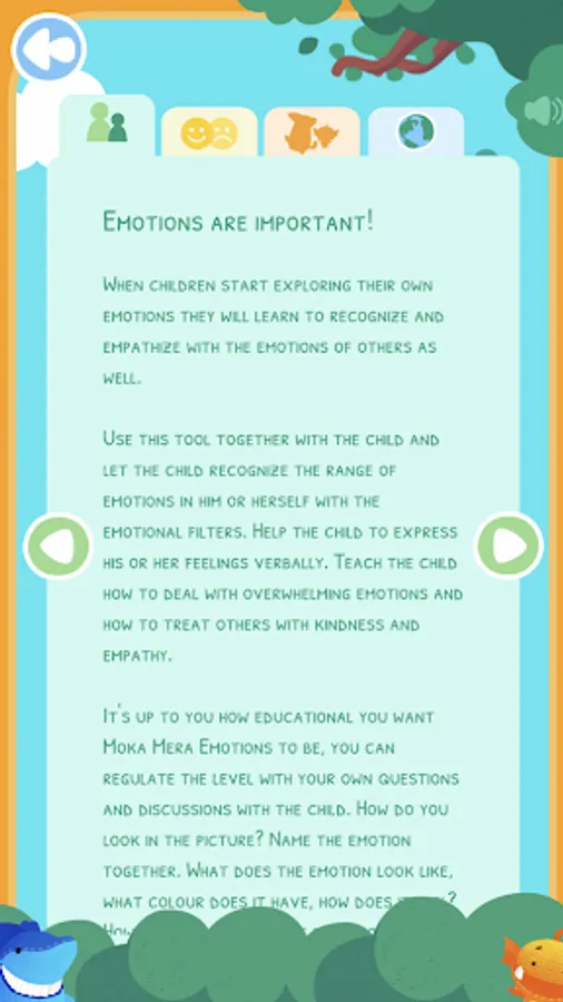 The child might not be familiar with all the emotions in the app. By giving examples, telling stories, reading books, and playing with the emotions in the app, you can help the child to name and identify new emotions. This will be your key to opening a meaningful discussion with the child about emotions, as well as understanding and managing them. When children become good at recognizing and describing their feelings, it’s easier to advance to the next step: showing empathy towards others — a vital life skill.