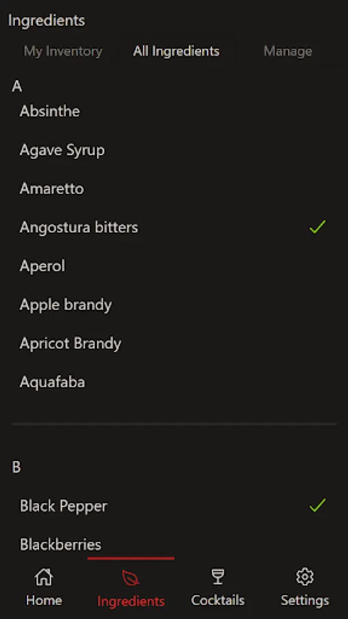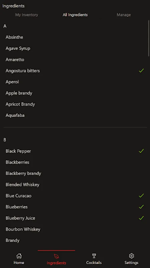 - Ability to add your own cocktails and ingredients within the app.