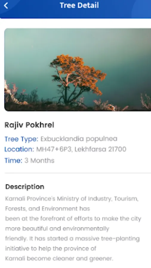Memory Plantation is a digital platform for individuals and institutions to track and report on tree planting. The goal is to assure plant sustainability, save money, time, and effort, and have a greater environmental impact.
