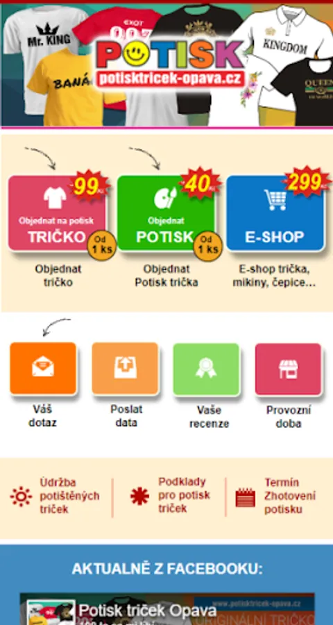 The Opava T-shirt printing application is a free application enabling quick and easy ordering of printing, a quick overview of news and easy contact with us.