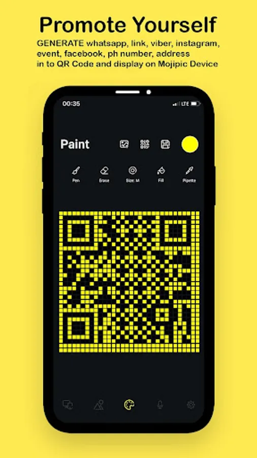 Turn any information into a QR-code: web links, WhatsApp, Viber, Facebook pages or FB messenger, Instagram, events, discounts, addresses, payment links, etc. Send it to a Mojipic and anyone will be able to scan the QR code with their smartphone.