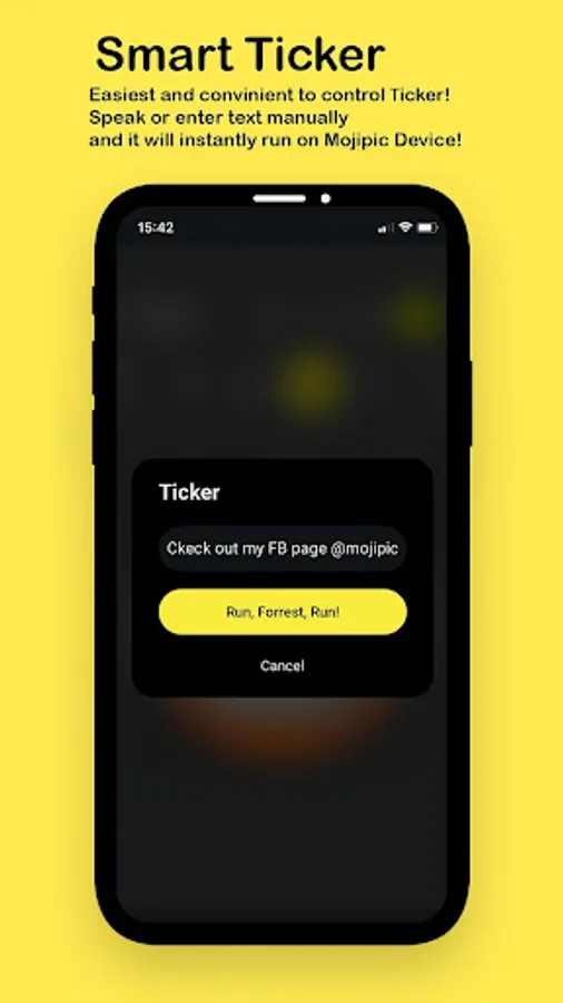 Speak or enter text manually and it'll instantly start scrolling across your Mojipic.