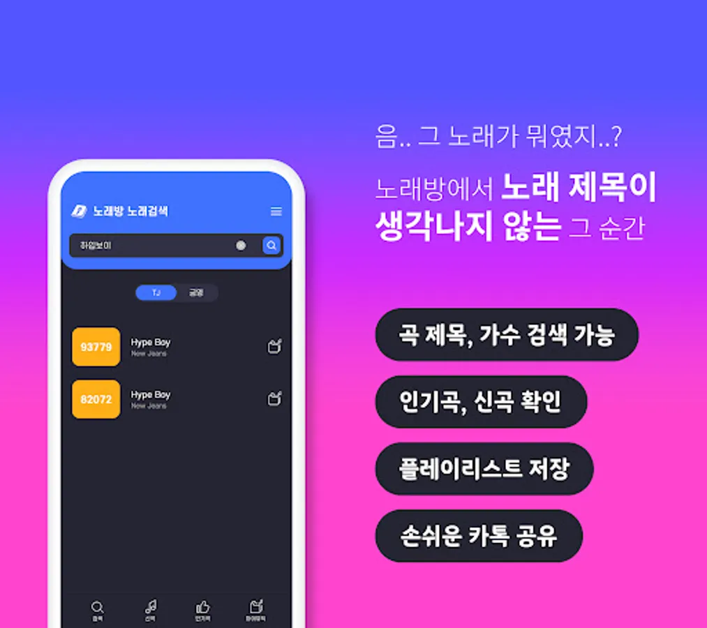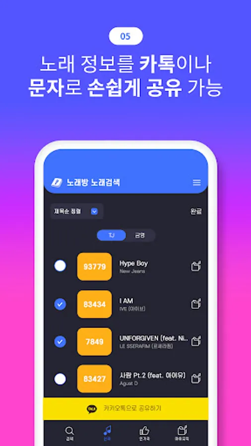 -Sharing function: You can easily share song information through kakaotalk or text with the sharing function