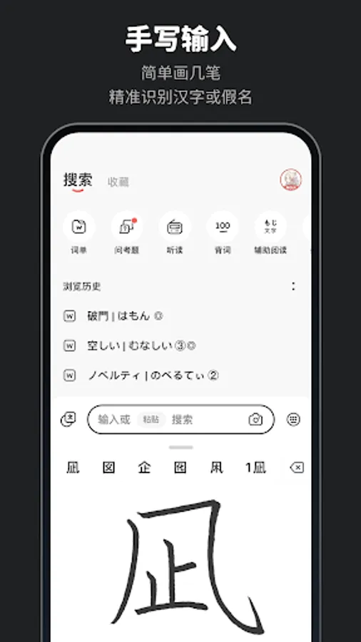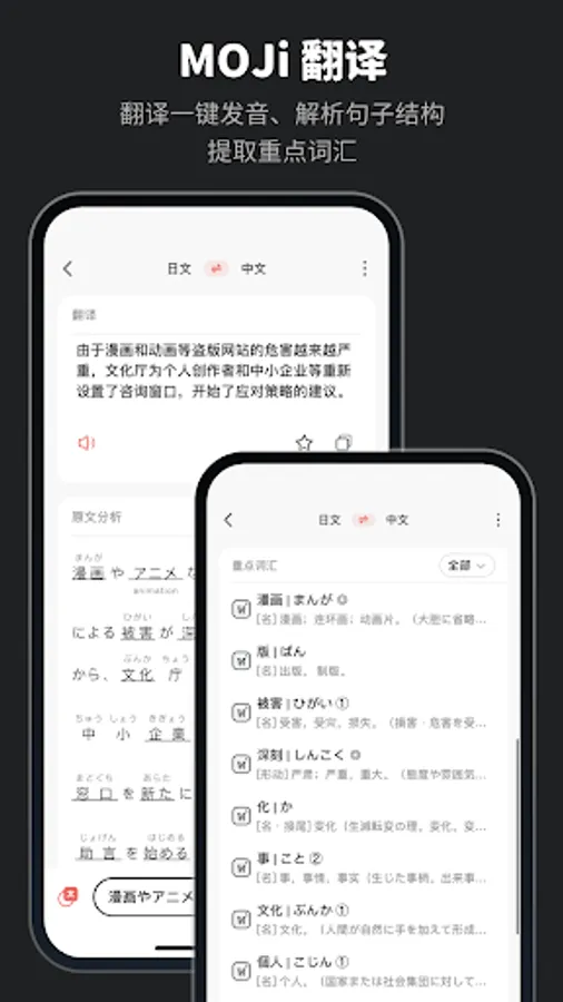 "Communication をよりNatural に" - MOJi Dictionary (じしょ). At present, 100,000 offline high-frequency detailed entry entries (offline thesaurus are regularly updated) and millions of cloud entries have been included, and a number of authoritative online dictionaries are attached to the direct search service. MOJi Dictionary will continue to improve deeply around "experience",