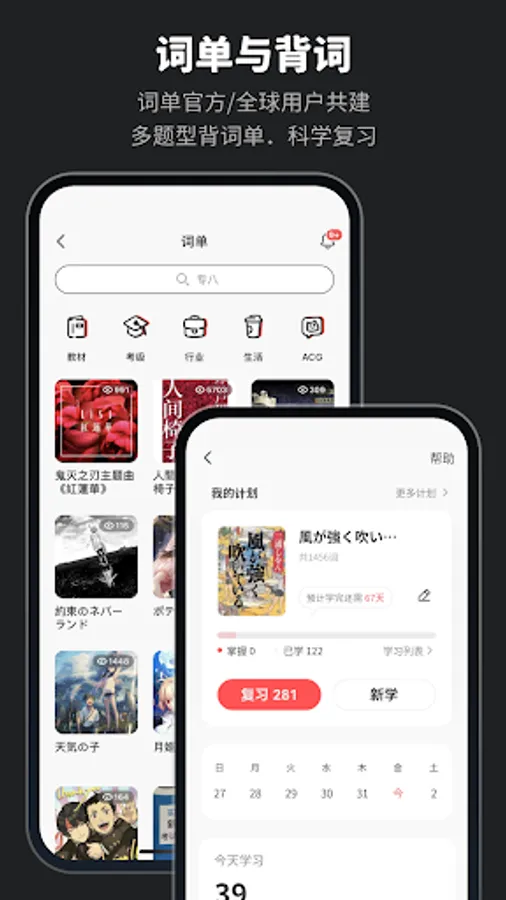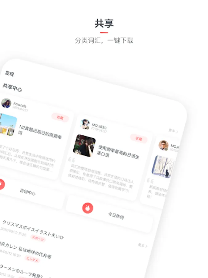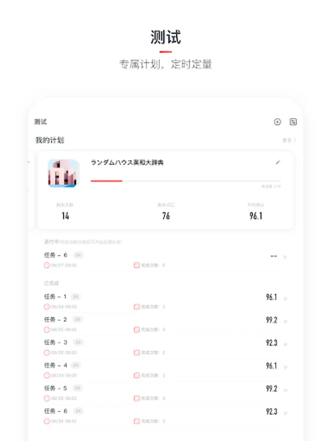 Customized daily word push, you can choose different thesaurus (such as ability test N1 thesaurus) for fixed-point quantitative push;