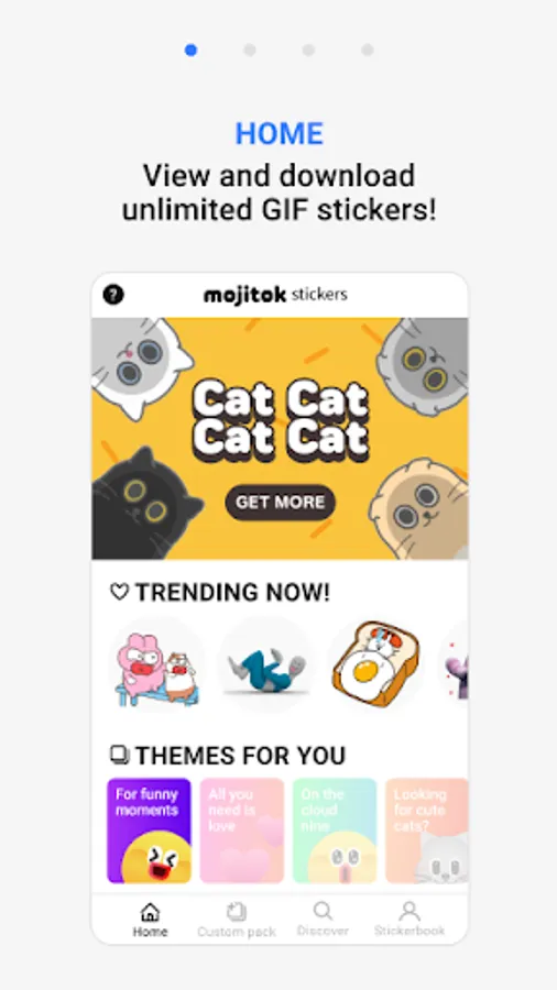 1. Browse from the best content in mojitok and download the sticker packs you want.