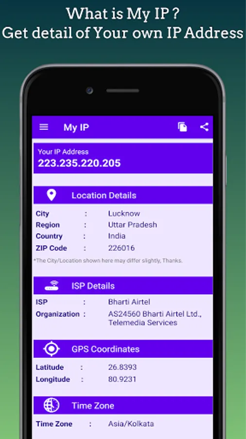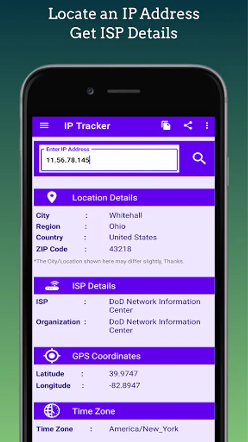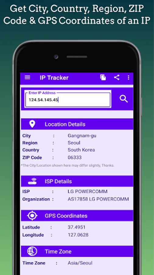 Note : The app shows only City or Approximate location of an IP Address. It does not shows exact Location of an IP Address.