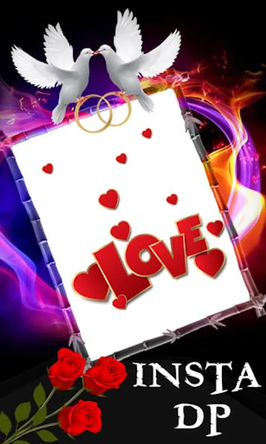 Just Download and install this Love You Insta DP Maker. Select the LOVE PHOTO FRAME of your choice from the list of DP frames. Add the photo of your choice in the LOVE DP maker frame. Add Love photo effect on photo and save it.