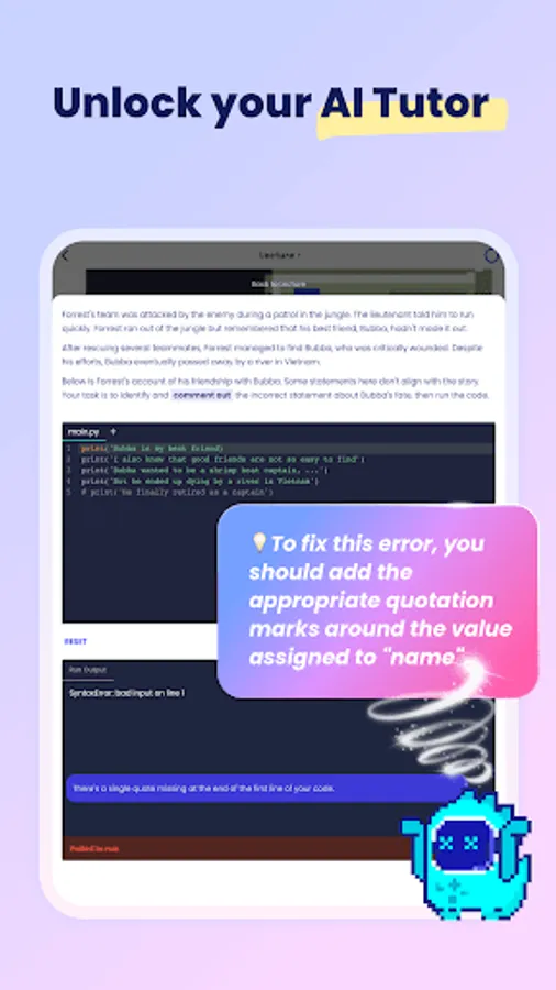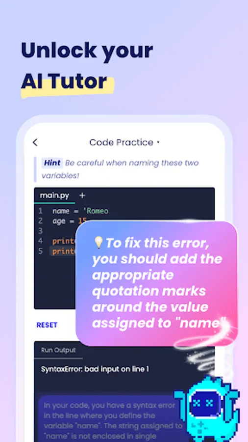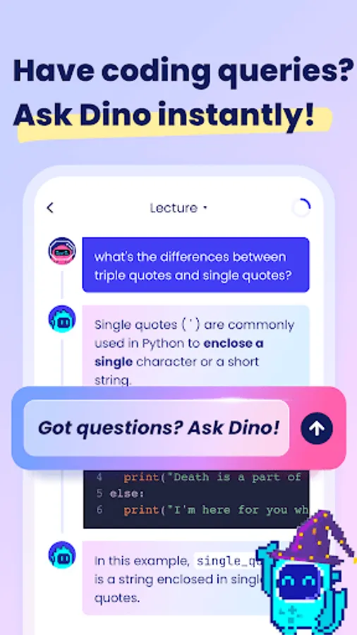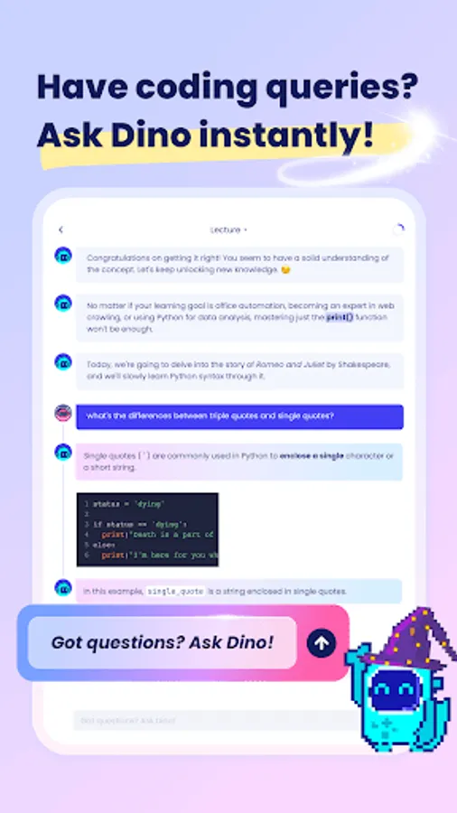 Learn coding through interactive and engaging conversations. Complex concepts are broken down into bite-sized pieces, making it accessible and enjoyable for everyone.