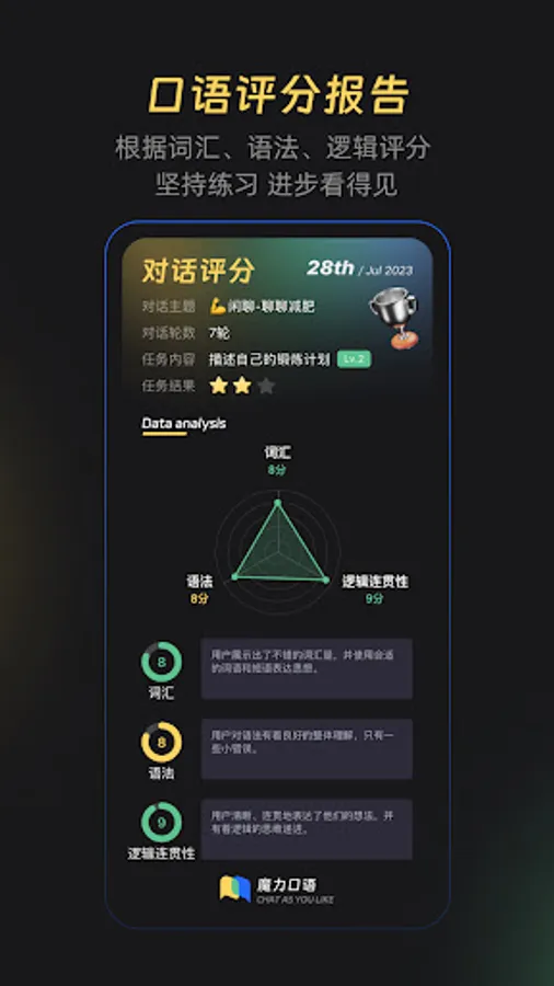 MojoHi is an app that helps you get more comfortable speaking English out loud by letting you practice speaking out loud more than any existing method. MojoHi is an oral English practice app based on ChatGPT. The biggest feature is that it can customize a real oral dialogue scene, get rid of fixed oral dialogue content, say goodbye to nervousness and embarrassment, and persist in confident speaking for 30 days.