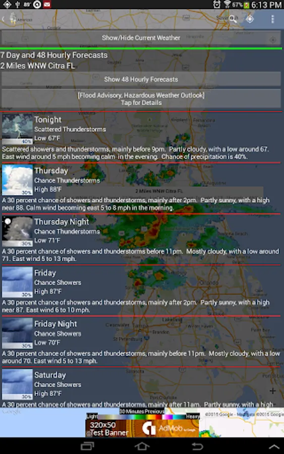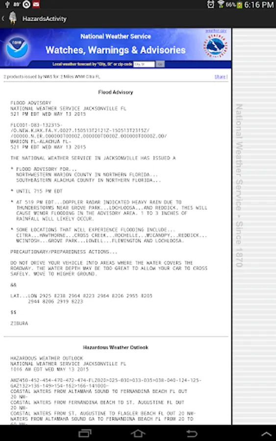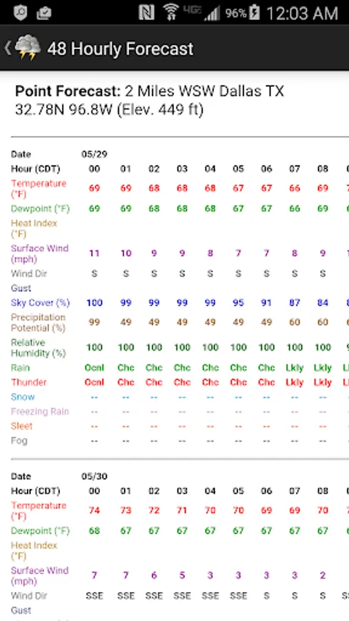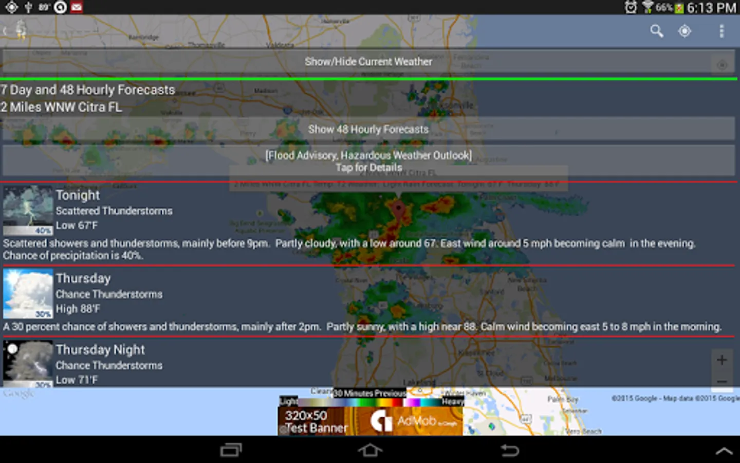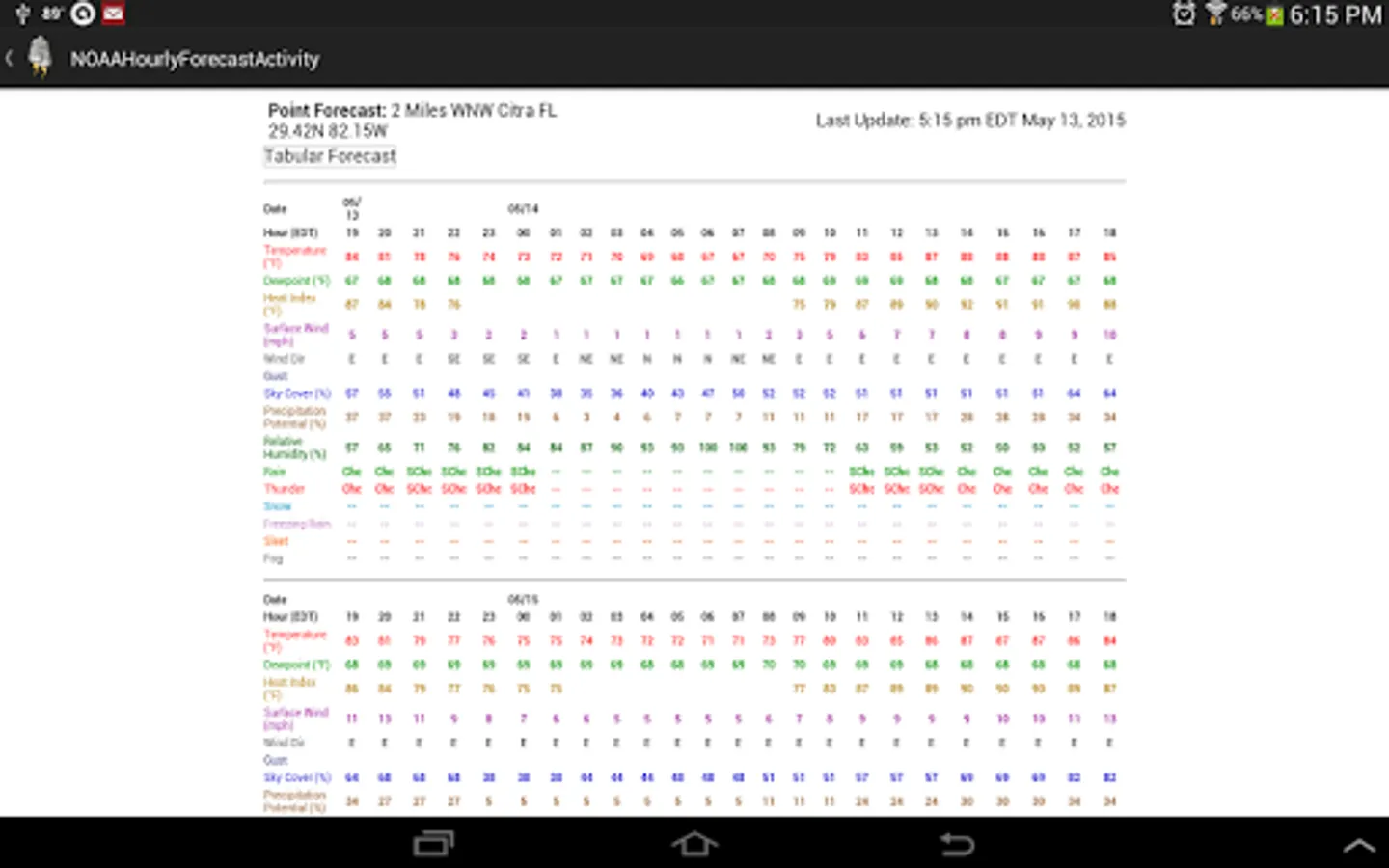- Long-press any USA location on map or use rain cloud action bar icon menu to get forecast, current observation, 48 hour hourly forecast and weather hazards