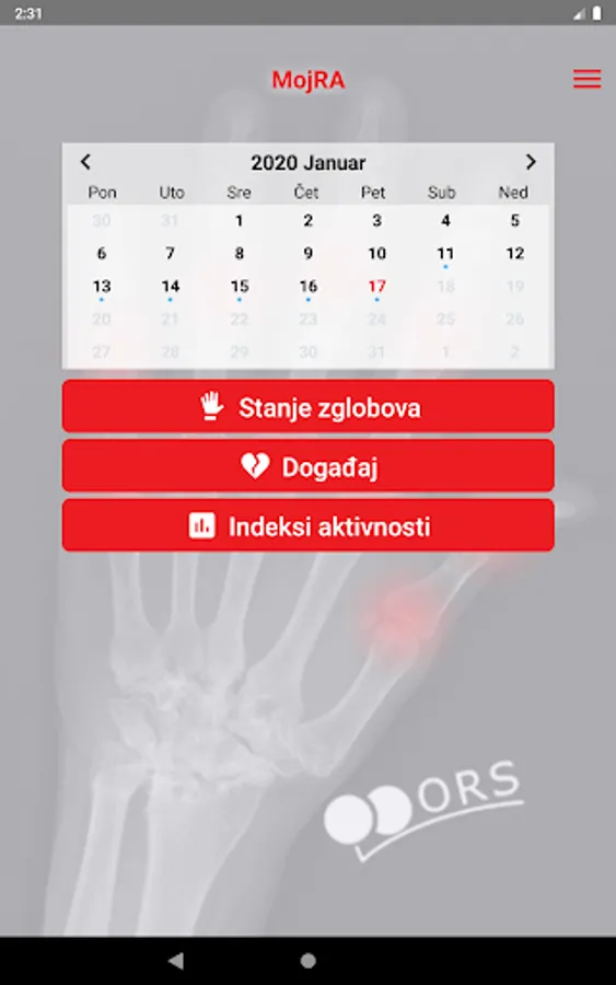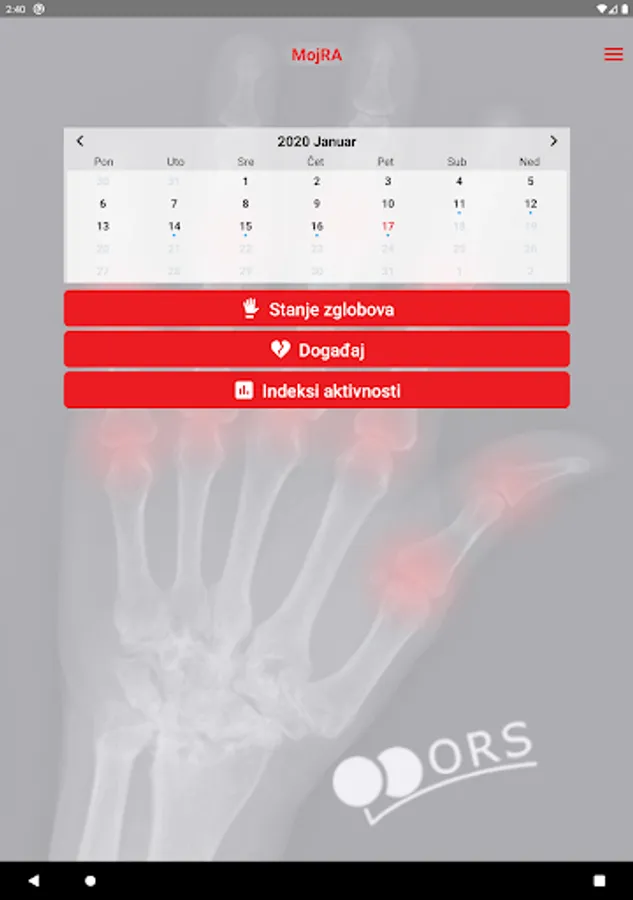 The MojRA application is prepared by the Association of Rheumatic Diseases of Serbia and is intended for all patients with rheumatoid arthritis. With the help of this application, patients will be able to record and store information about important moments during their treatment, as well as being able to more easily and better describe the disease activity between the two controls during their check-up.