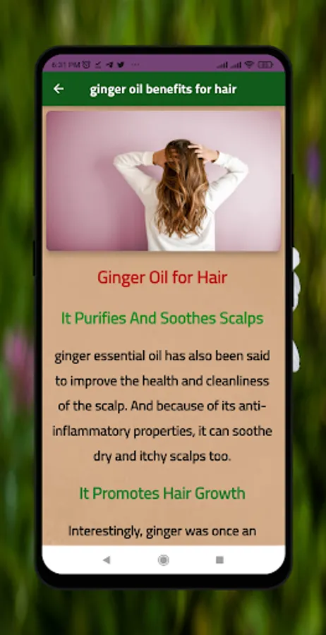 Ginger oil has a distinct aroma that can be described as strong, warm, or spicy. As such, it’s often used for aromatherapy. Ginger oil can also be used in a variety of applications in the skin and hair.