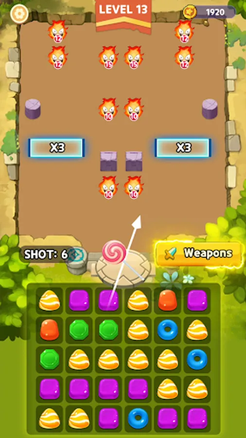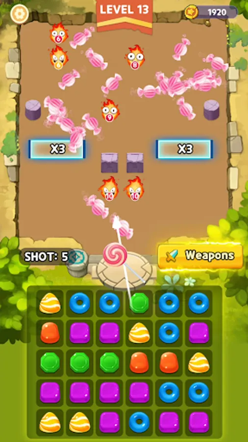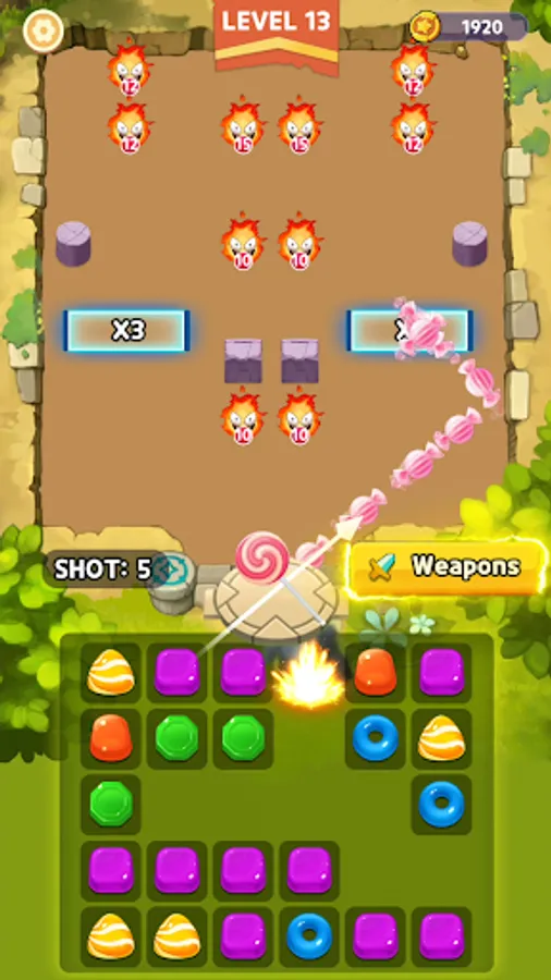 * The upper area of the game will automatically shoot to monsters. The more bullets, the more monsters you can defeat