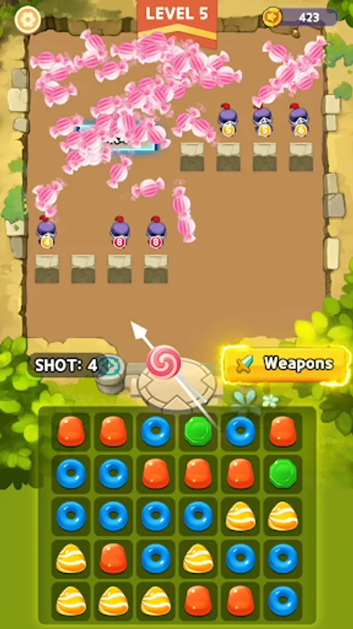 * Easy To Play: In the lower area of the game, eliminate desserts of the same color to get the corresponding number of bullets