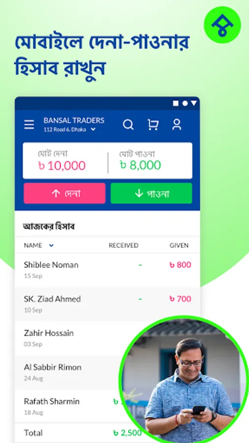 - Manage your customers' credit and send them reminders to pay back.