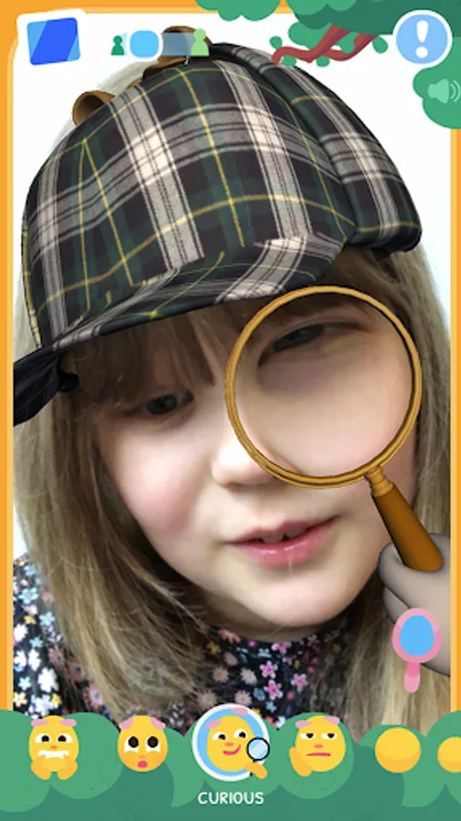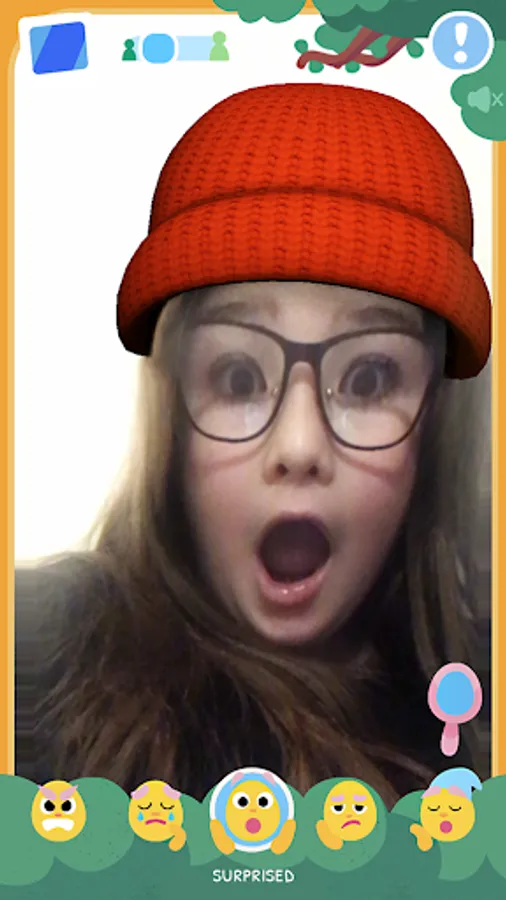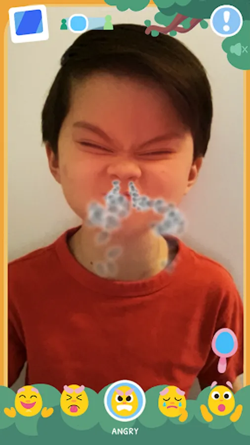 By tapping on the emoticons in the app, representing 19 different emotions, the image of the child’s face will change accordingly. The face becomes e.g. sad, surprised, angry, or happy. There are different emotional filters and sound effects to support the emotion.