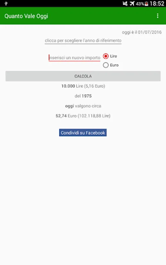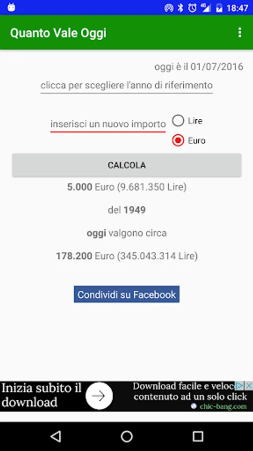 For those nostalgic for the lira but also for those who have only heard of the lira, this is the app for you. It allows to express the figure is in pounds and in euro and view the results in both formats.