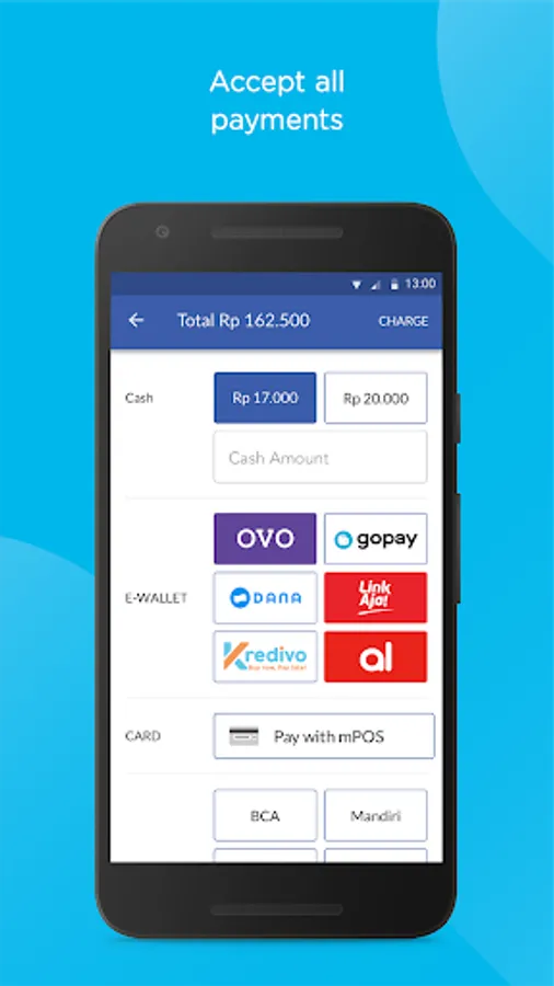 With Moka Pay, accept all payment methods and streamline your business with Point of Sales that fits your business preferences. Purchasing new hardware would be unnecessary because Moka PAY provides Free POS Lite feature and Payment Aggregator that is compatible with your Android smartphone to support your micro and macro businesses