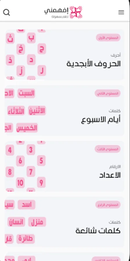 You will find a test on each part you learn, and your score will appear after the test, and an encouraging picture that matches your score, and many advantages you will see when you try the application