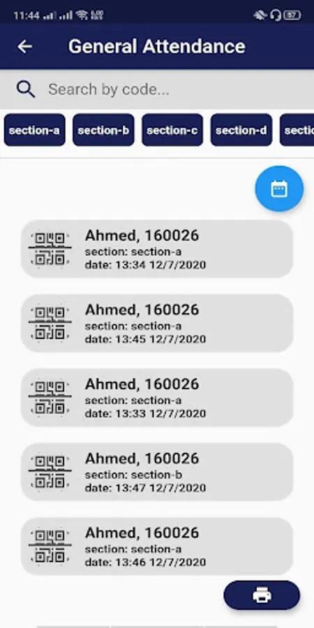 This app lets you have control of the attendance to an organization using QR codes, so you can register the hour of arrival, and also tells the amount of time each person was present in the organization.