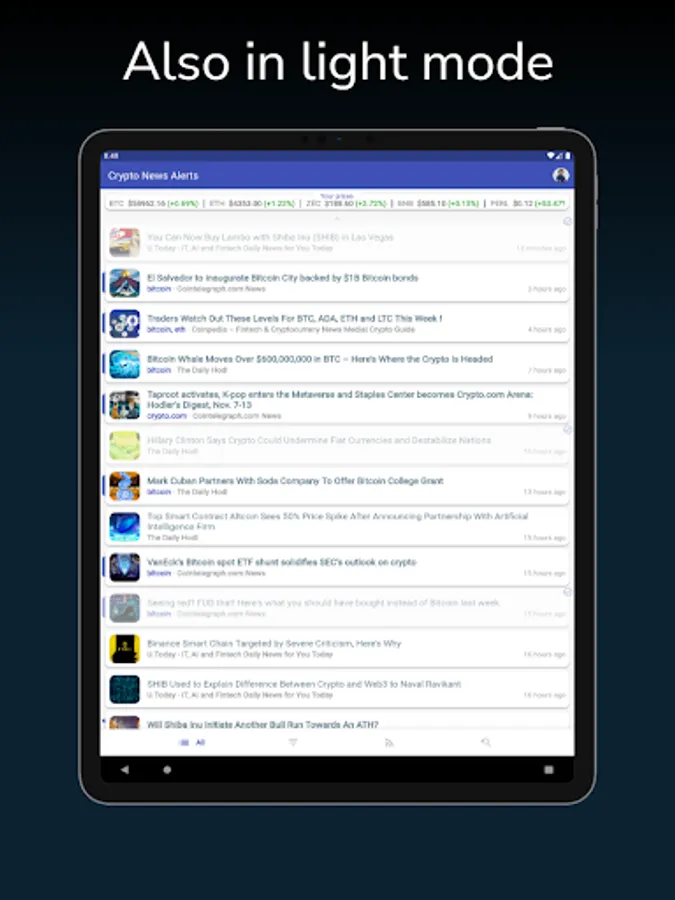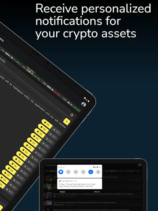 You don't need any crypto news widget, the application will send you the notifications in real time, keeping you informed of all crypto market news matching your keywords. Start receiving cryptocurrency news today, saving valuable time.
