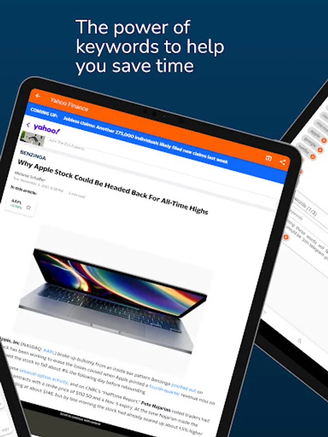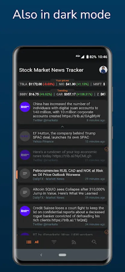 This app will notify you about any news containing the keywords you set, such as "Tesla", "Google", "Apple", "Microsoft" or any other company.