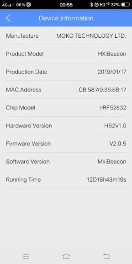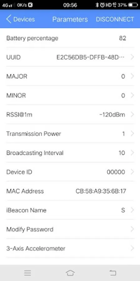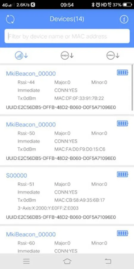 Read information from Moko iBeacon device including UUID, Major, Minor, Battery power, RSSI, Tx Power, Device Name/ID etc.